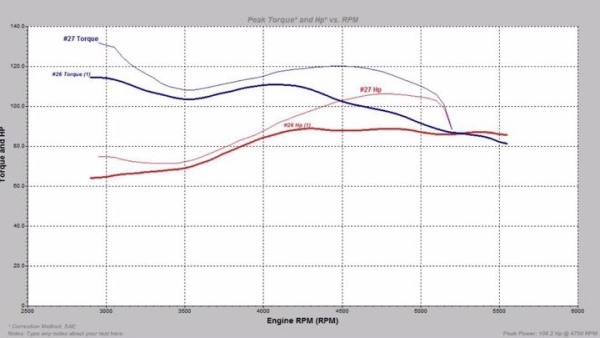 测试时计入该款的四缸四冲程发动机惯性数据进行补偿和天气气象站的即时修正,下面是两车动力测试过程与结果。