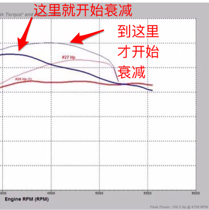 为了便于分析,我们把两车动力曲线进行了重叠对比,大家可以看图,粗线为天窗版,细线为无天窗版。
