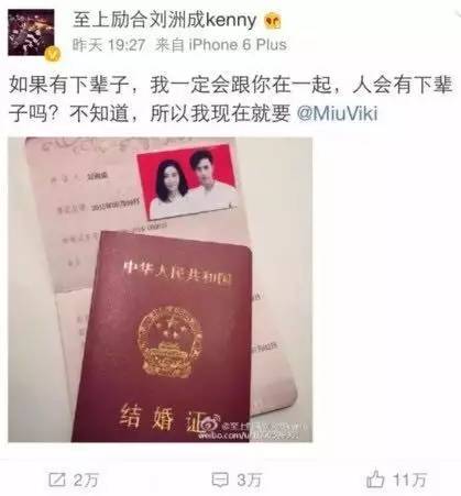 2015年9月,刘洲成和林苗结婚。当时刘洲成在微博忽然晒出结婚证,还引起粉丝一阵小骚动。据粉丝爆料,刘洲成曾为女朋友拉黑不少粉丝,可见当时至上励合还有点余温。今天这新闻爆出来,不少人都要先问刘洲成是谁……