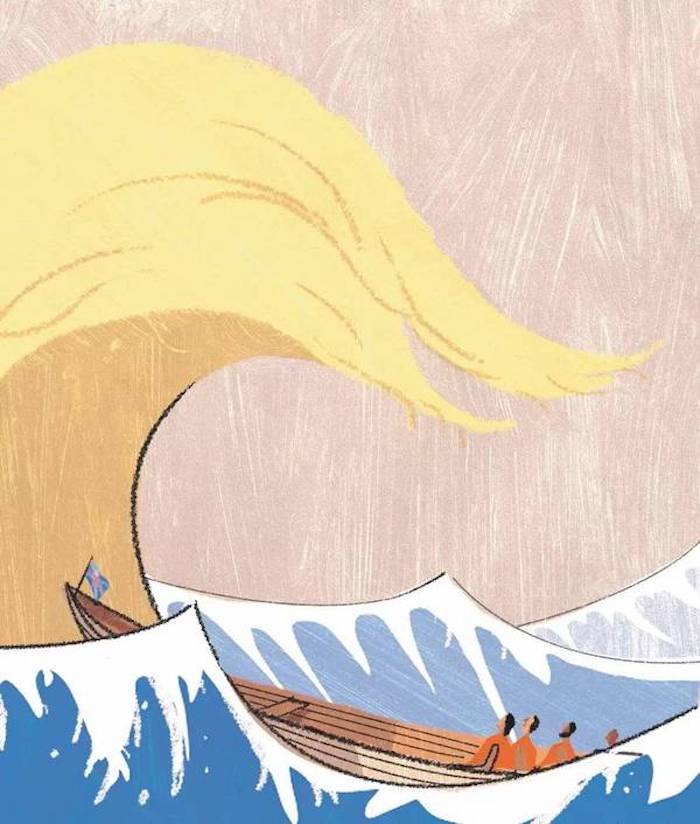 今年的最大赢家要数刊载于The Sunday Telegraph Money,由A. Richard Allen创作的《Trump Wave(特朗普浪潮)》配图。这幅图乍一看没什么了不起,顶多算是对日本浮世绘代表作《神奈川海浪》的一种现代致敬。但作为与特朗普相关的文章的配图,整幅作品就变得有趣了起来。你会看到特朗普标志性的刘海在风中翻飞成了大浪,眼见就要掀翻插着英国的小船。个中寓意,无需再多说。