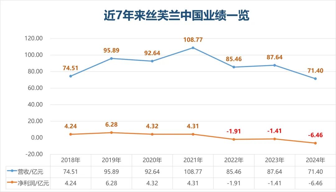 今年上半年,据上海家化半年报披露,丝芙兰中国营收34.44亿元,同比降12.3%;净亏损1.20亿元,显示业绩仍在下滑。