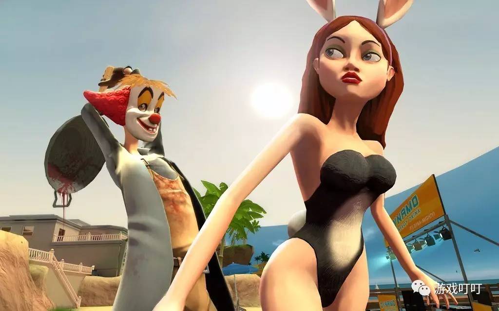 美国动画电影风。就像《神偷奶爸》里那种的风格。有很多个可供区分的角色:小丑,哥特萝莉,兔女郎,阳光壮汉啦等等吧。总之还看得过去。还有就是游戏有一些老了画面可能会略显过时。不过应该不至于玩不下先去。