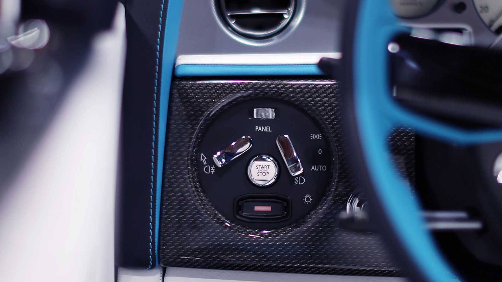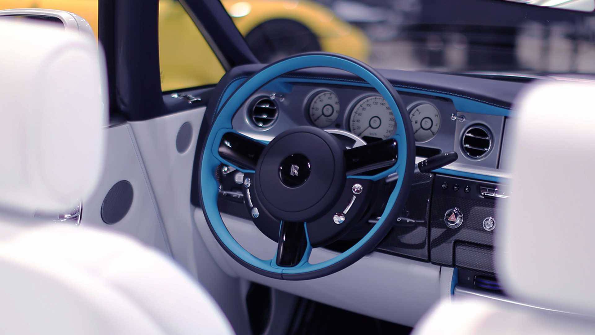 内饰方面,采用与外观相一致的配色方案,白、黑双色皮革辅以拉丝铝饰板和碳纤维饰板进行搭配,配合绿松石色进行效果上的点缀,使得车内的豪华氛围上升到了极致。