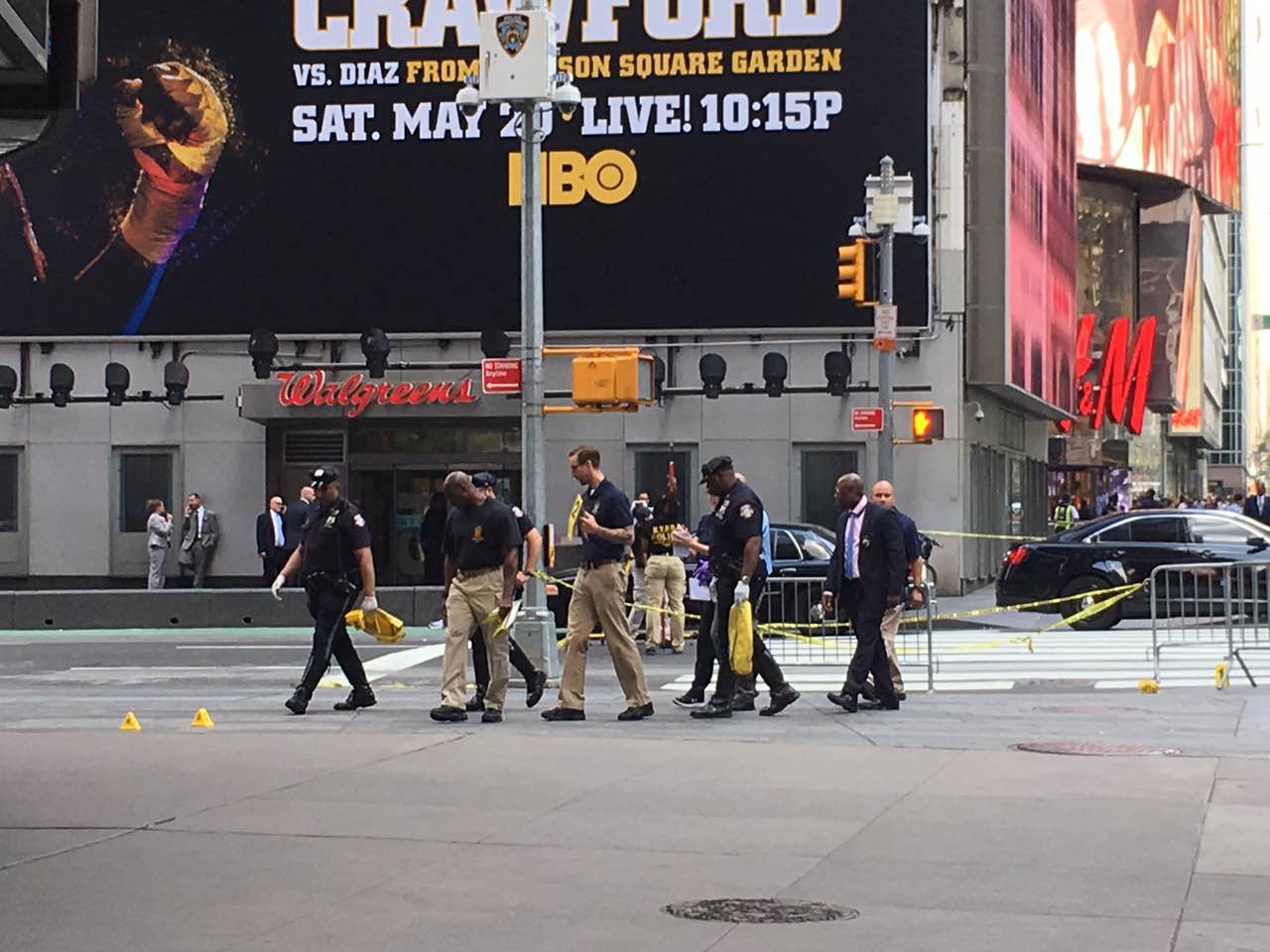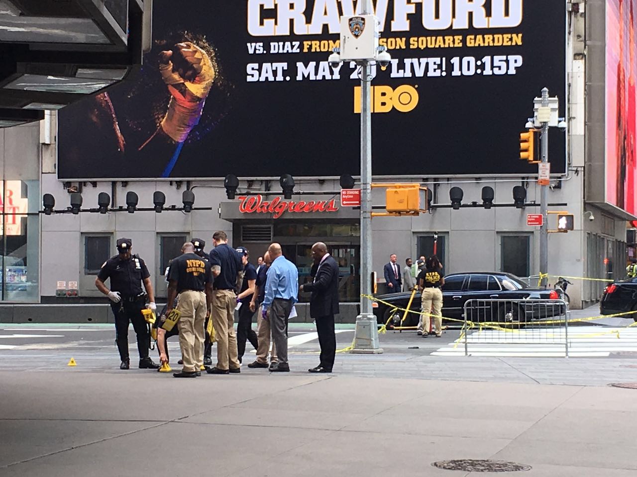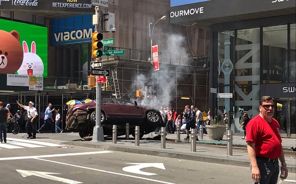 在单行道上逆行冲撞行人后,该车停在在金属隔离墩上,一侧车身被抬起,有烟雾冒出。最终,这辆车在45街与百老汇(Broadway)的西北角停下。随后,警车与消防车抵达现场实施救助,曼哈顿中城附近的交通当天下午一度堵塞,警铃大作。
