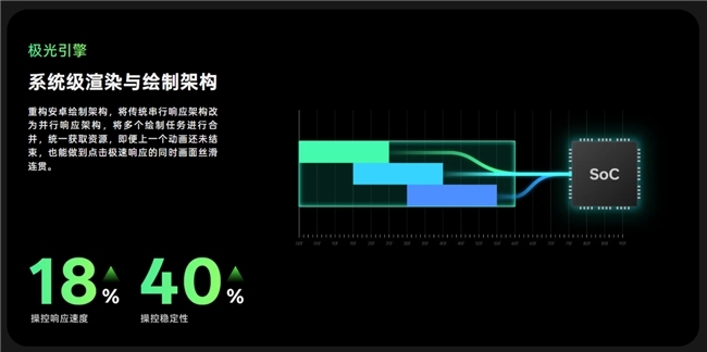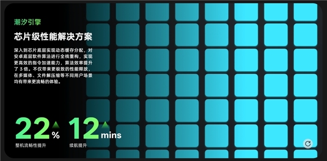 首先这个“潮汐引擎”从芯片级别的性能优化入手,深入调校硬件资源调用,动态分配系统缓存,自研全栈式算法加速器,彻底释放了芯片的性能潜力,实现了性能、速度与能耗全面且均衡的提升。而这正好对应了本文开头所提到的:系统通过合理的资源调度,才能发挥出芯片的最佳性能。最终在潮汐引擎加持下,整机流畅性可以提升22%,同时具有功耗优化的作用。