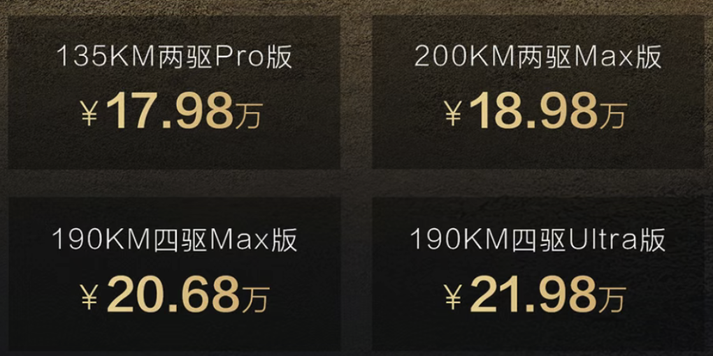 9月9日晚间,比亚迪新车方程豹钛7正式上市,共提供四款配置,上市价格17.98万-21.98万元。