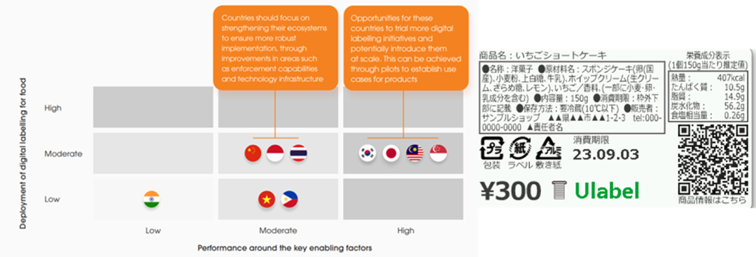 左:亚洲智能食品标签发展现状;右:日本食品电子标签示例