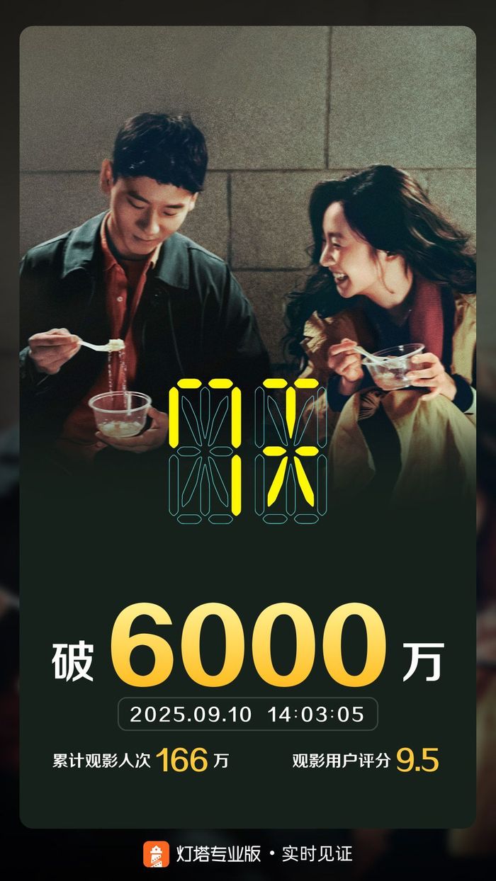 据灯塔专业版实时数据,截至9月10日14时03分,影片《7天》票房突破6000万元。
