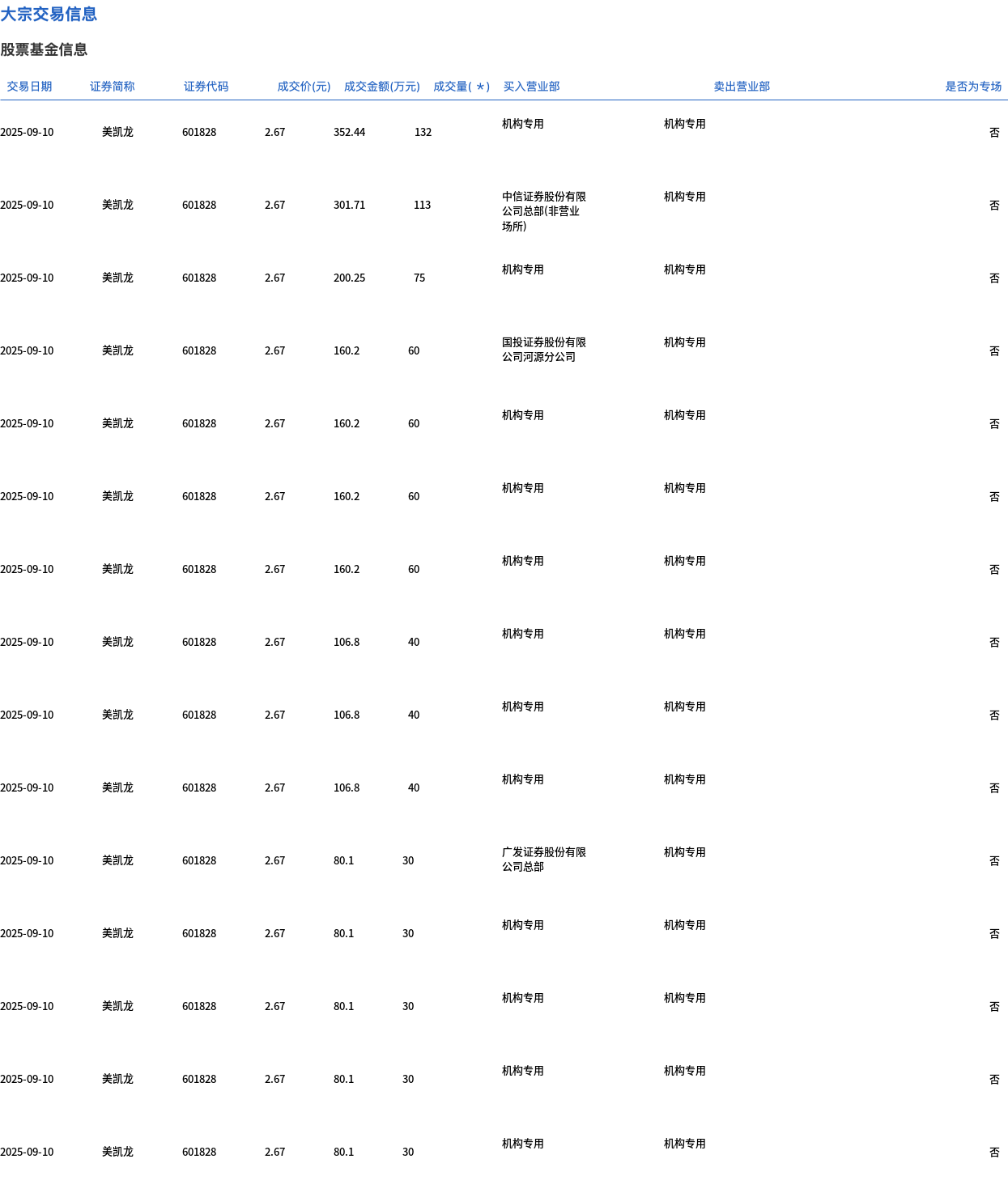 9月10日,美凯龙大宗交易成交830万股,成交额2216.1万元,占当日总成交额的24.29%,成交价2.67元,较市场收盘价3元折价11%。