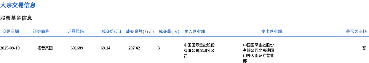 拓普集团今日大宗交易平价成交3万股,成交额207.42万元
