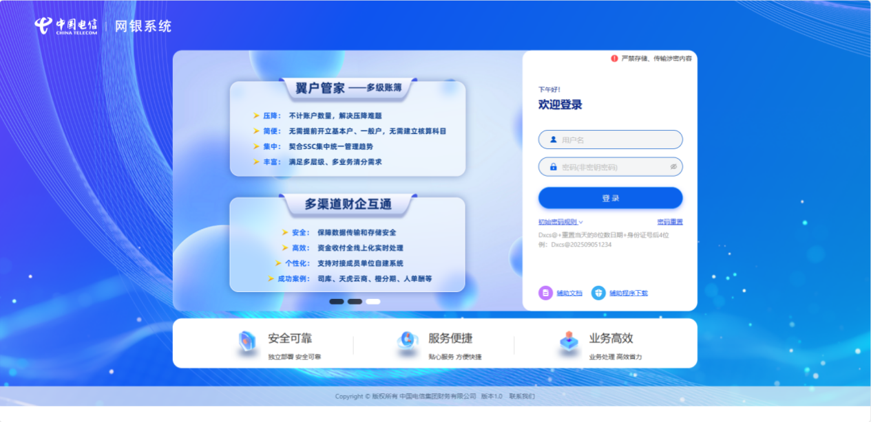 该系统在软硬件方面,深度兼容鲲鹏、海光等芯片架构,以及麒麟、自研CTyunOS等国产操作系统,适配OceanBase数据库,满足行业国产化替代需求。在应用层方面,所有业务系统完全基于国产化环境开发运行,实现100%国产化替代,彻底摆脱对国外技术的依赖,掌握核心技术主动权。