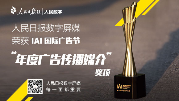 5月17日晚,在2017年IAI国际广告创享节颁奖典礼上,人民日报数字屏媒以其独占型高端渠道和丰富的互动广告形式,获得了“年度广告传播媒介”奖。