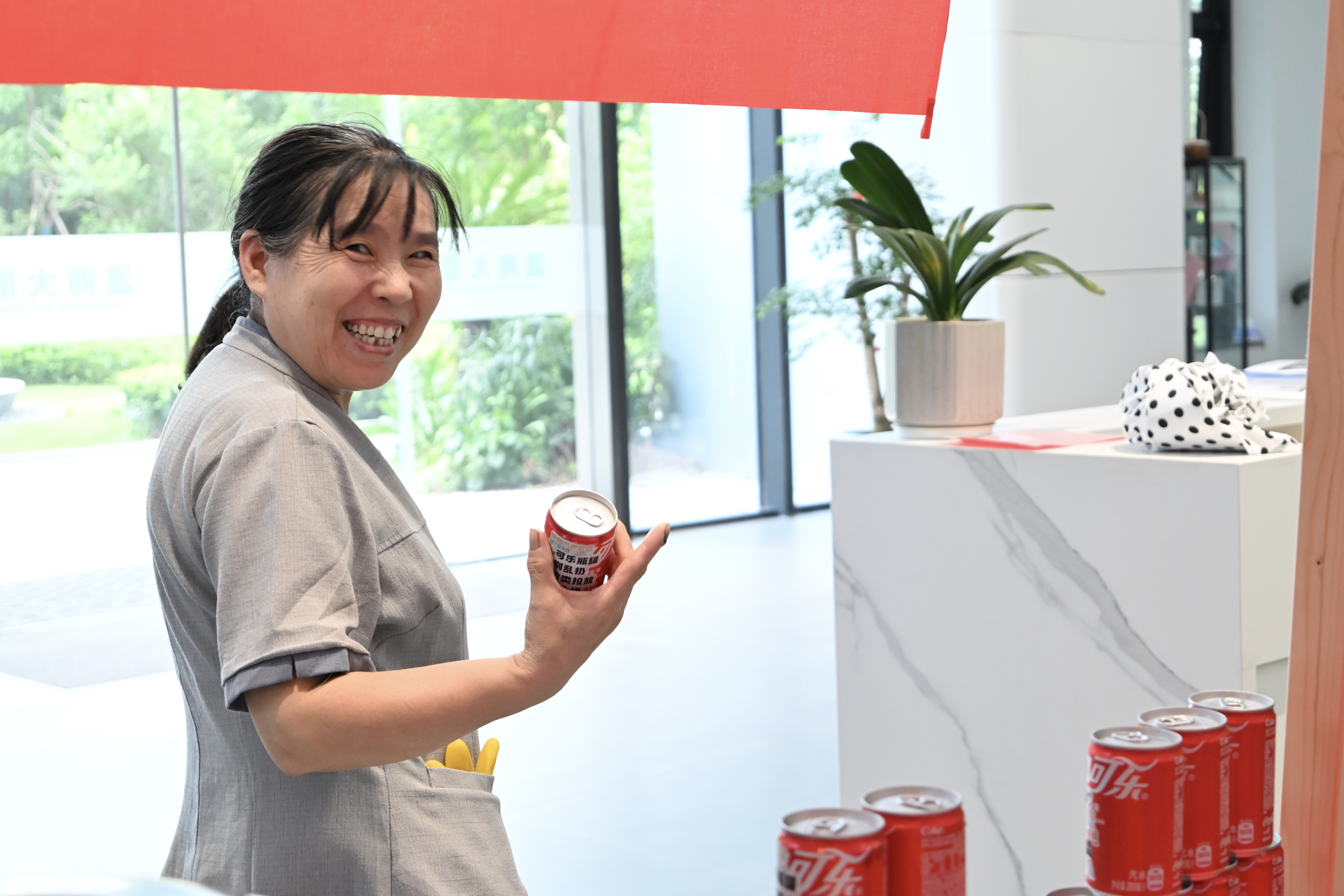 “我们留意到很多骑手一边跑单一边翻看手机,就萌生了把反诈标语‘搬’上可乐瓶的想法——随手可取、随时提醒”丽园社区负责人道出初衷。这一创意迅速获得商会支持,连夜定制反诈主题可乐,与凉茶一同摆放,供劳动者免费取用。