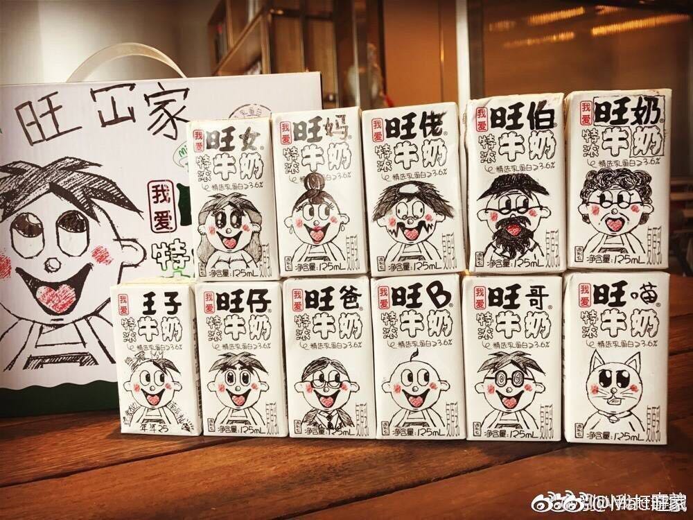 旺仔突然变成线条粗糙的手绘形象还激发了网友们的脑洞。网友@别叫我打游戏自己买来一箱特浓旺仔牛奶,用其中11盒画了幅“旺你全家(旺冚家)”。除了觉得好玩之外,评论区还有人能想起旺旺雪饼“你旺我旺,大家旺”的广告词。微博认证为旺旺集团首席运营官的@Matt旺家还专门转发了这张图。