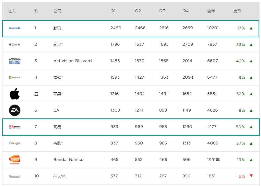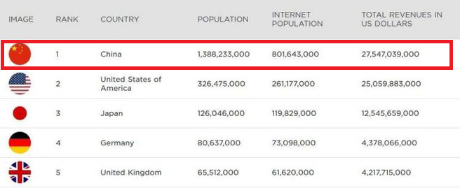 由于中国市场巨大,这也意味着除去腾讯和网易之外,其余厂商还有百亿量级的市场空间。