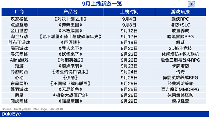 从时间来看,新游上线时间多集中在9月下旬。且22日-26日是上线时间“高峰期”。