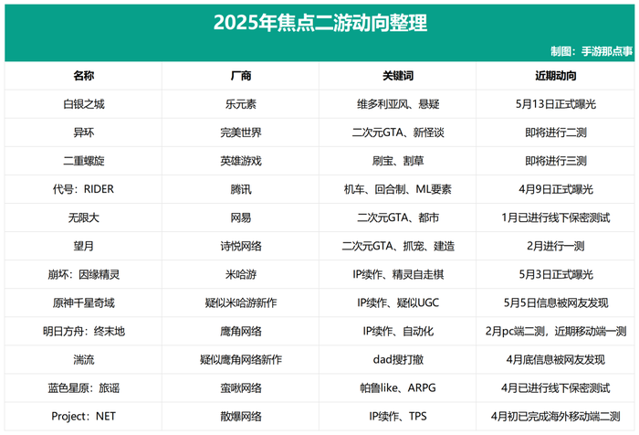 今年趋势预判:根据媒体的统计,多家大厂仍手握二游储备,至于是否会在Q4季度上线,有待观察。但今年并不是二游大年,有声量的都是米系、鹰系产品,新游要突围而出,颇为艰难。