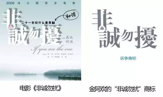 早在金阿欢注册商标前,华谊公司就上映了《非诚勿扰》影片,且享有影片标题“非诚勿扰”的文字著作权、以及该片宣传海报中呈现的电影标题美术字形设计的美术作品著作权。