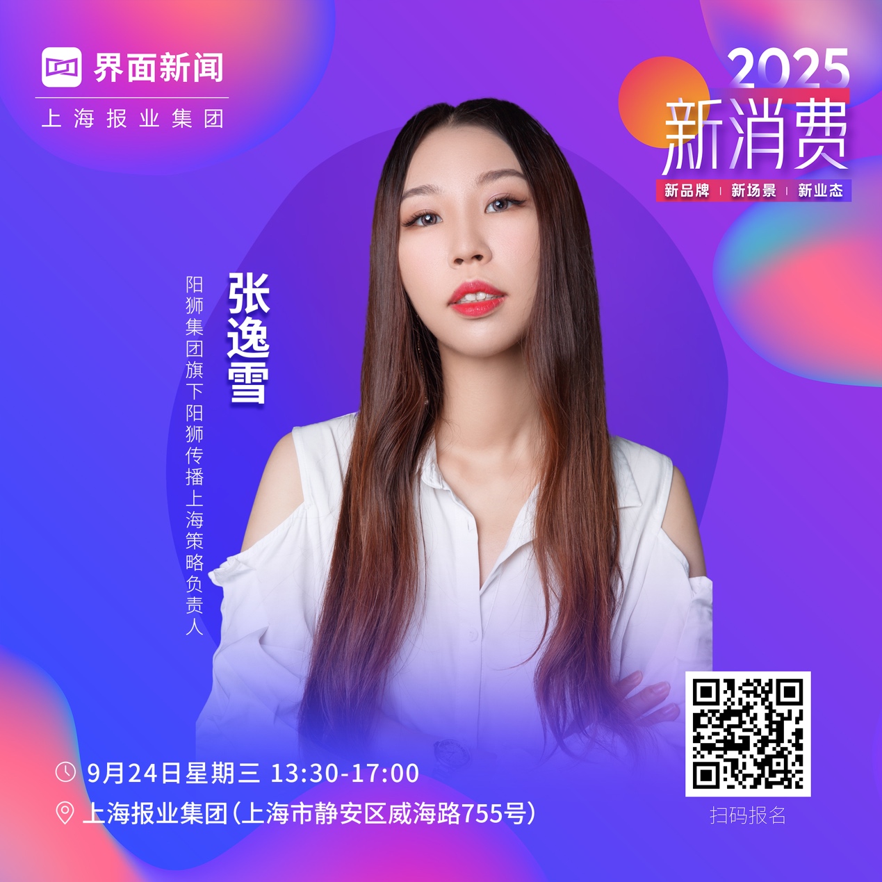 由上海报业集团|界面新闻倾力主办的 2025【新消费盛典】将于9月24日在上海报业大厦43楼融媒体创新空间(上海市静安区威海路755号)举行。本届盛典紧扣“新业态”的脉搏,紧盯“新品牌”的锋芒,深探“新场景”的潜能,在规模覆盖的广度与议题挖掘的深度上实现双重突破,迎来全面升级。现场更将汇聚各界领军人物,以思想交锋点燃灵感火花;多项重磅荣誉大奖也将逐一揭晓,为消费领域的佼佼者加冕。阳狮集团旗下阳狮传播上海策略负责人张逸雪确认出席2025【界面新消费盛典】。
