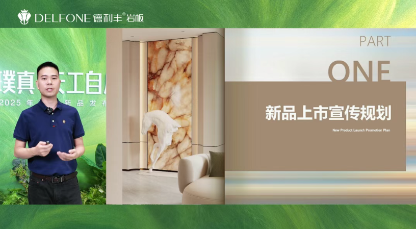 此外,德利丰岩板市场运营副总监陈广强发布《德利丰2025年秋季新品推广》计划,涵盖新品上市宣传规划、线下推广活动方案及落地推广工具支持,从品牌声量打造到终端获客转化,为经销商提供全链路的营销支持,确保新品快速触达市场,转化为实际业绩。