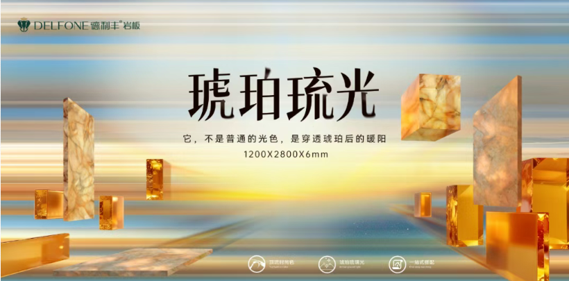 德利丰岩板敏锐捕捉这一趋势,震撼推出两款全新规格系列新品:1200×2800×6MM 琥珀琉光与 1200×1800×10MM 天工理石/璞真原石系列,以尺寸突破、花色创新与人性化设计,为空间美学注入全新活力。