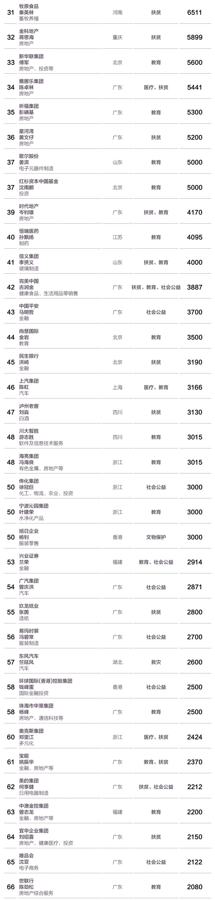 - 上榜企业集中在14个省级行政区,广东省的入榜企业和捐赠总额都排名第一,有30家企业进入榜单,贡献了46.89亿元的捐赠额,占榜单总捐赠额的39%。