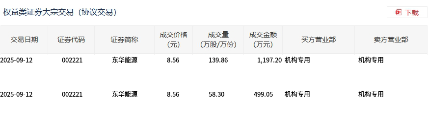 东华能源今日大宗交易平价成交198.16万股,成交额1696.25万元