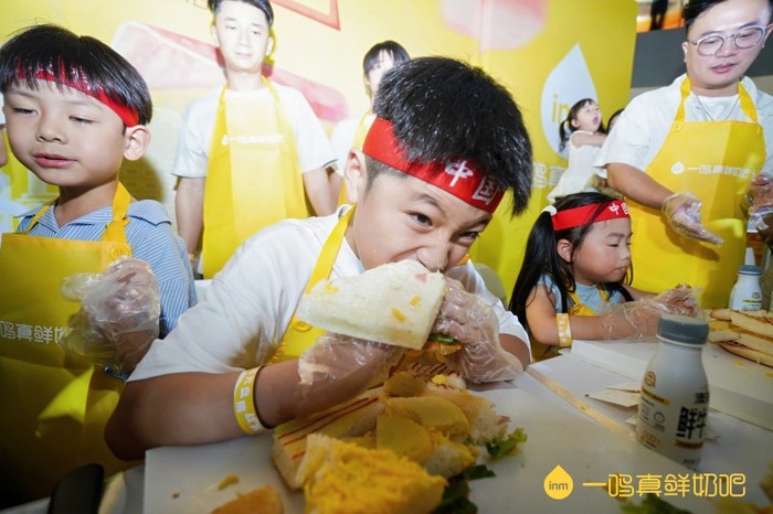 活动现场,近30组由爸妈带着孩子的家庭,以2-4人组队,在15分钟内接力挑战重达4-5斤的巨型三明治。比赛所用的巨型三明治是一鸣真鲜奶吧开学季的新品——“法式厚蛋芙火腿三明治”的放大版本。该产品以“高肉含量、低盐、无反式脂肪酸”为核心卖点,采用澳瑞鲜牛奶制作的蛋芙蕾,口感轻盈、营养丰富,搭配优质火腿与烘焙吐司,严格遵循一鸣营养早餐的“5优彩虹营养”早餐标准,确保每一口都符合青少年成长所需的营养结构。
