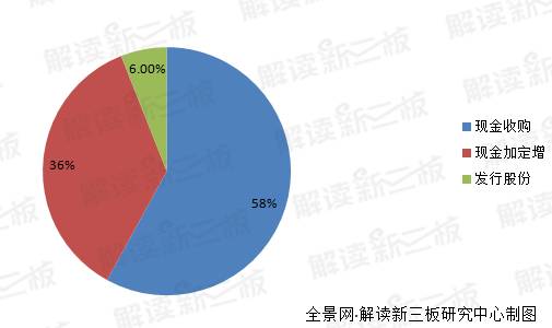 在A股再融资受限的影响下,现金收购成为上市公司并购新三板的主流。36起上市公司对新三板的并购项目中,21起为纯现金支付,占比达58%。