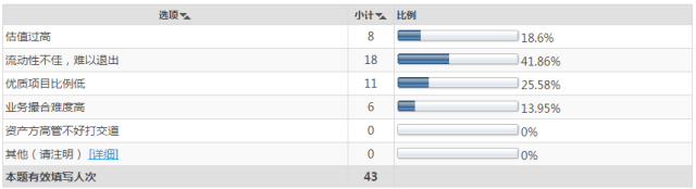 在此前解读君对143家上市公司的调查中,上市公司对于新三板并购项目的最大烦恼是优质项目比例低。其次才担忧流动性不佳,难以退出。也有部分公司反应新三板项目估值过高。