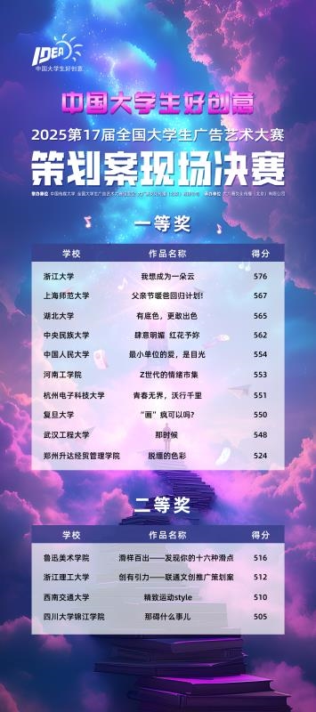 本届大广赛共收到20622组策划案类参赛作品,经由学校初评、各赛区评选和全国总评审的多轮严格筛选,最终从77件二等奖作品中再度精选出14组优秀策划案,成功晋级现场决赛阶段。