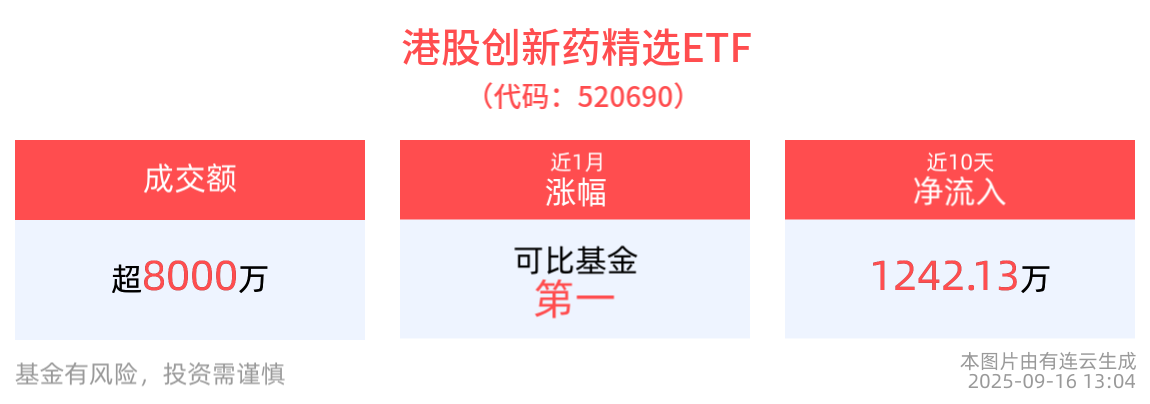 流动性方面,港股创新药精选ETF盘中换手22%,成交8236.60万元,市场交投活跃。拉长时间看,截至9月15日,港股创新药精选ETF近1周日均成交1.68亿元。