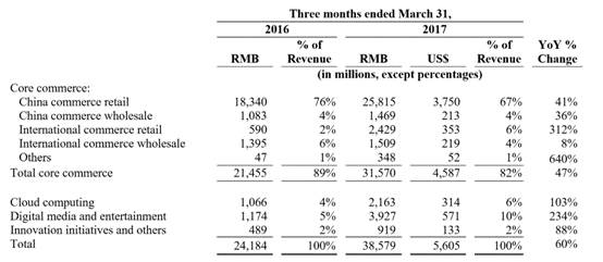 阿里收入同比增长60%,核心电商收入同比增长47%