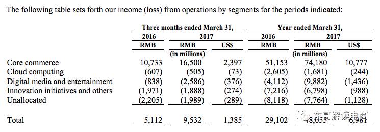 另外,就是阿里在阿里云、数字营销和娱乐、其它创新业务的亏损在加大,而核心电商业务里面的国际化部分的亏损也在加大。所以这拖累了阿里的利润表现。