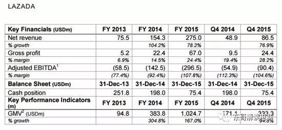 根据往年Lazada财报看,从2013财年到2015财年,虽然净收入一路高歌猛进,分别为7550万美元、1.54亿美元、2.75亿美元,但其营业利润持续亏损,幅度分别为6790万美元、1.5亿美元、3.29亿美元。