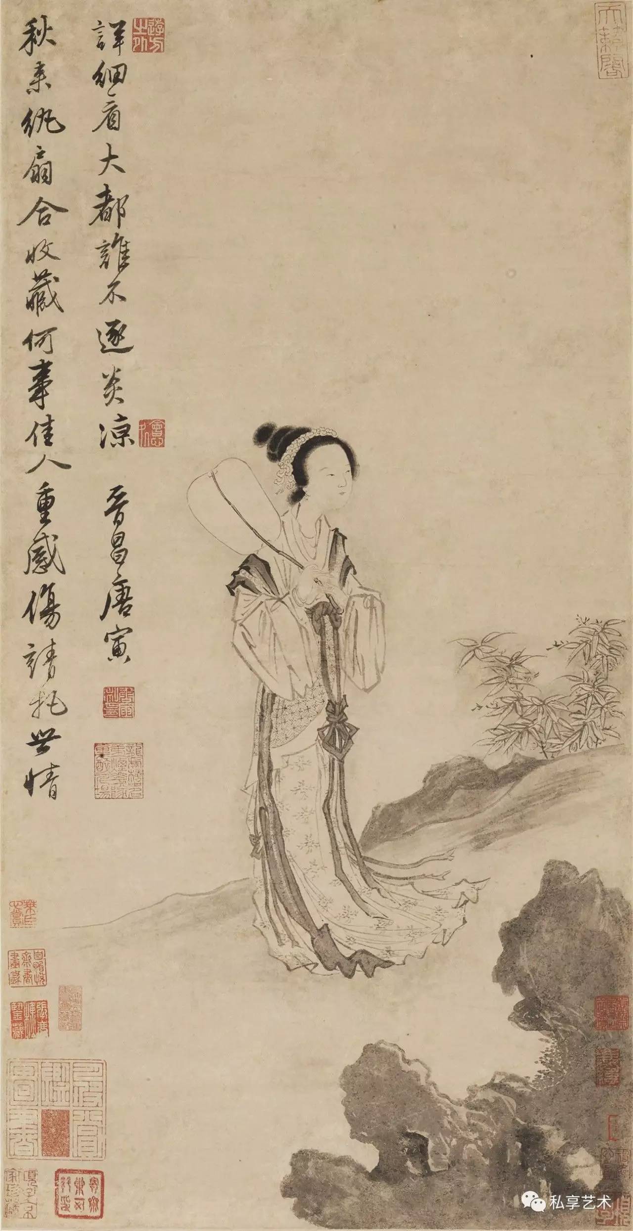明 唐寅 秋风纨扇图轴 上海博物馆藏