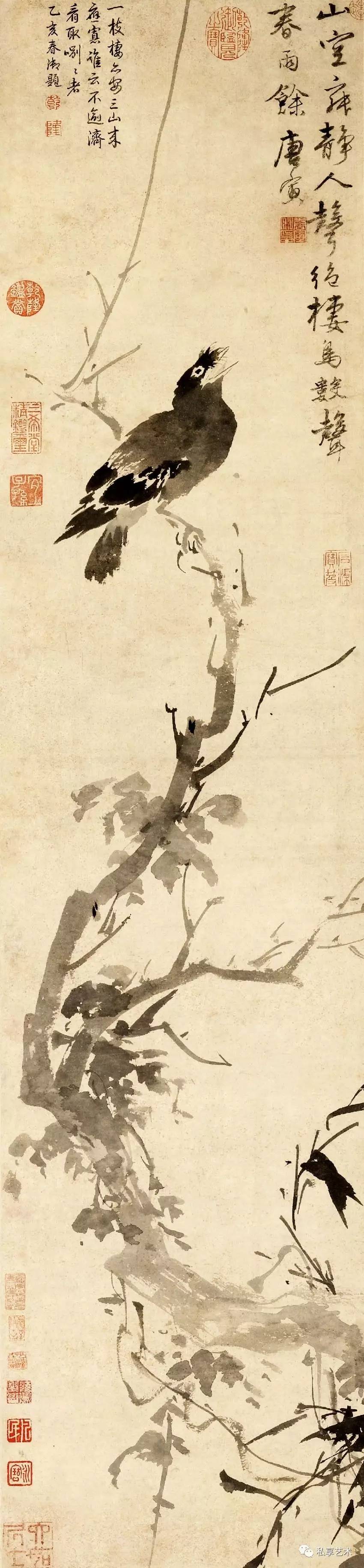 明 唐寅 古槎鸜鹆图 上海博物馆藏