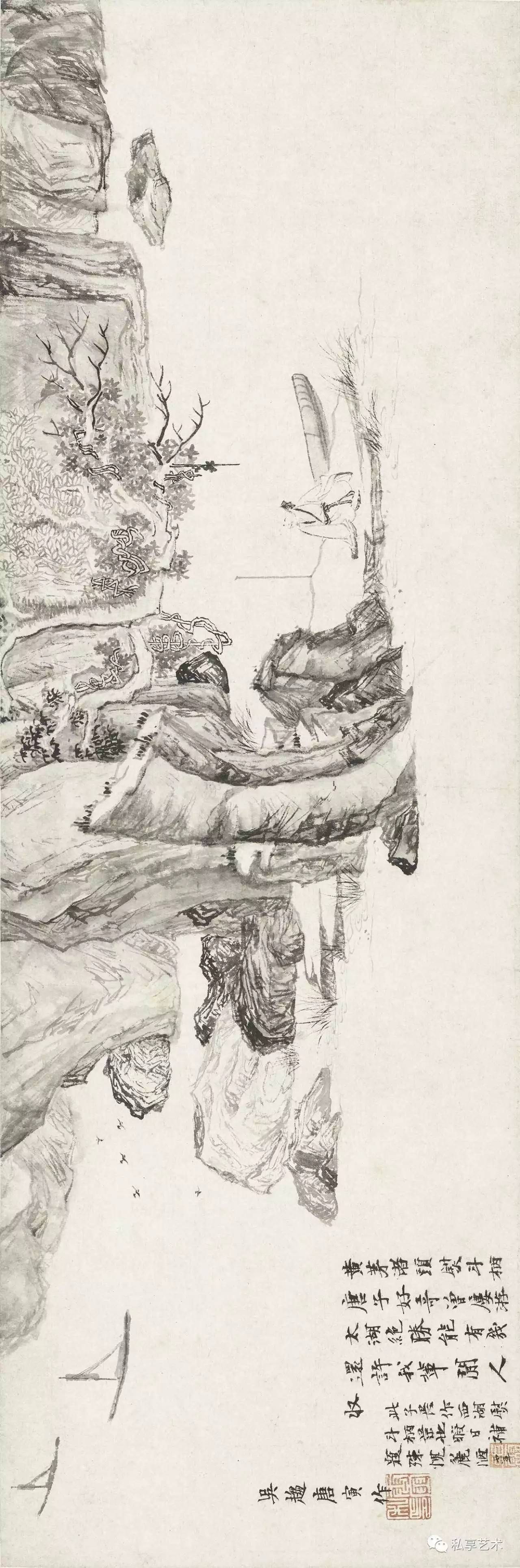 其实,我们常常有这样的感觉,人们似乎是被强行拉上急速行驶的时间列车之上,目送着窗外节节逝去的影像,伸手去抓,两手空空,无从把握。人似乎总与黑暗中一种不明力量在斗争。存在的总是残破,美好的总伴着幻灭,握有的又似乎没有。满目山河空念远,落花风雨更伤春,像唐寅、沈周这些旷世才子,面对着落红点点,面对着空荡荡的宇宙,他们 又如何能保持内心的平静呢?