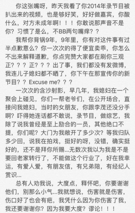 李茂在文中细数“罪责”,包括承认自己当年的确欠钱,但欠款前年已还清;当年动手打人是因为马雪阳抢了刘洲成当时的女友,还造谣李茂打瘦脸针;以及早几年还未和李茂结婚的弦子在出席活动时被其他成员逼问为何还不分手。