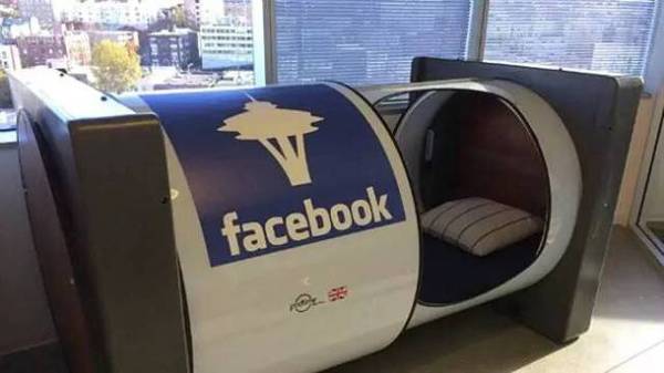 Facebook也有睡眠仓,多采用聚碳酸酯材料制造,内部有储物架和电源插座,同时配有LED灯和用来检查仪态的镜子,可封闭的舱门也能够减少外部噪音,还有专门的通风口使空气循环流畅。