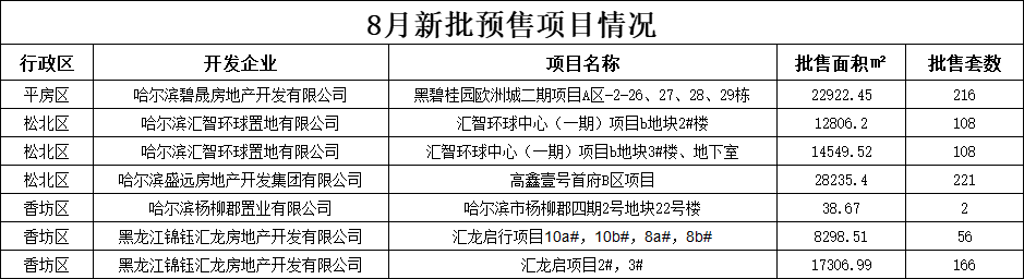 2025年8月,哈尔滨新房市场延续了今年以来“供应引导成交”的结构性特征。据哈尔滨住建局数据,8月共新批6个住宅项目,覆盖平房、松北、香坊三个区域,总计批售面积约10.4万平方米,批售住宅约877套,其中松北、香坊区表现尤为活跃。