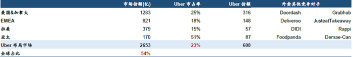 图:Uber外卖市场全球布局资料来源:Uber公告,华泰证券