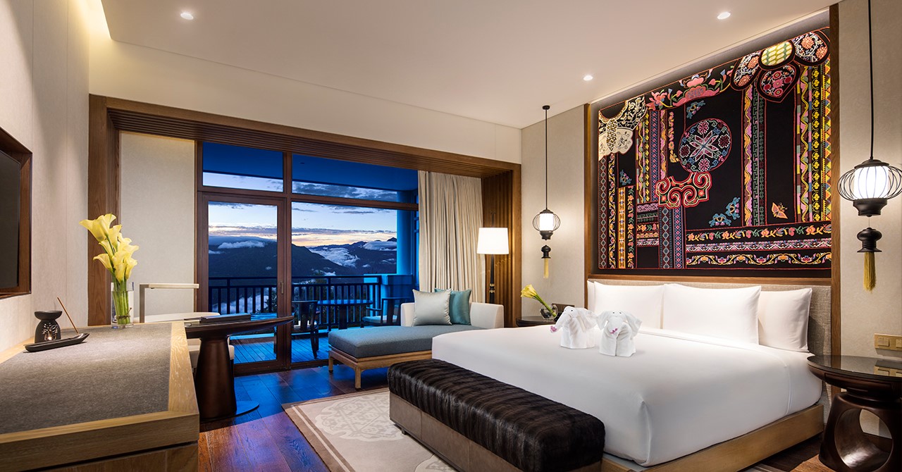 九寨沟悦榕庄就是其中一间度假酒店。和当前九寨沟的大部分酒店不同,它坐落于海拔2500米的山峰之巅,拥有360°的远山深谷之景。