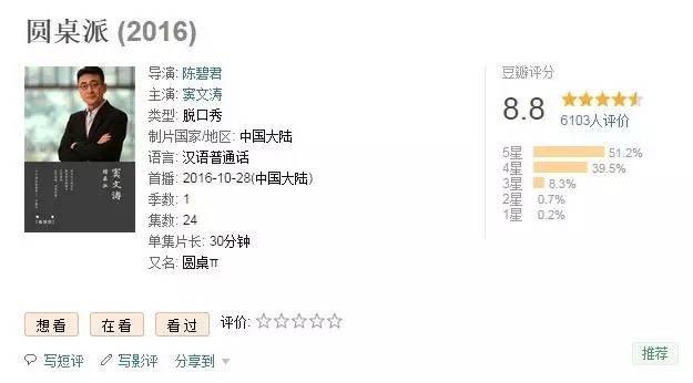 自《圆桌派》第一季上线以来,仅用三个月时间就创下互联网文化类节目总播放量破1亿的纪录,获封豆瓣“年度最佳文化节目”。