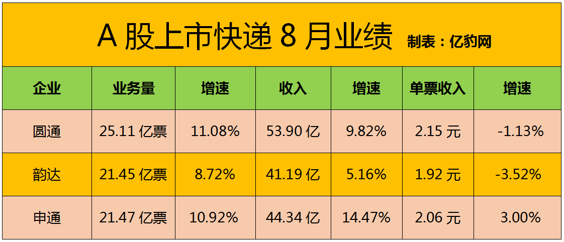9月18日晚间,两通一达发布的8月经营业绩显示,受产粮区涨价影响,单票收入环比明显提升。