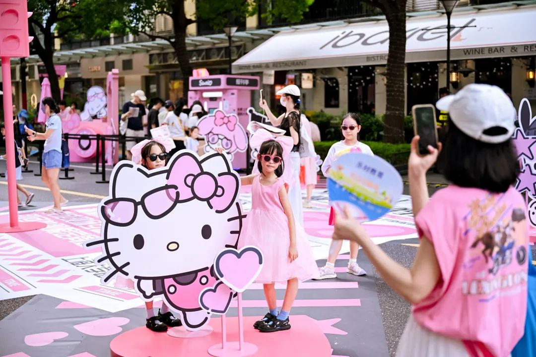 8月的两个周末,三丽鸥改造大学路成为上海这个暑假的热门事件。美陈层面,有仪式感的拱门入口、超级T台和好朋友打卡点,还有承载着巨大的Hello Kitty气模的痛楼,让整个街区散发着主题乐园的味道。
