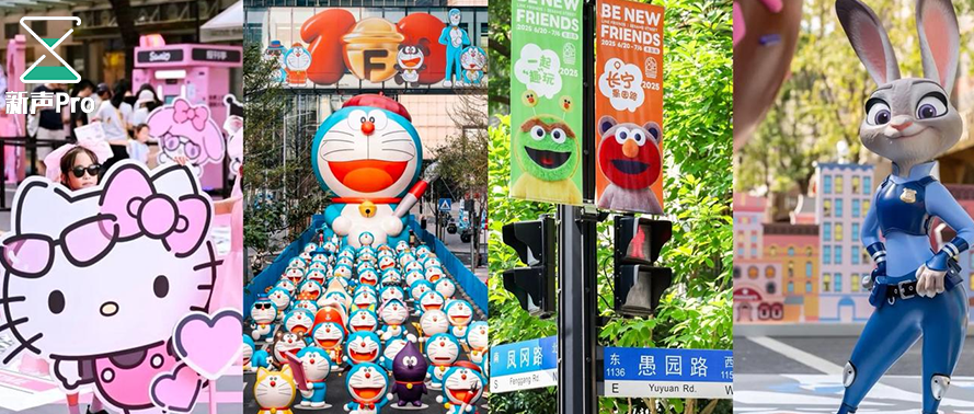 今年暑期以来,越来越多的IP开始走出商场,走到上海的街头,将街区改造成充满IP元素的「痛街」(主题街区)。