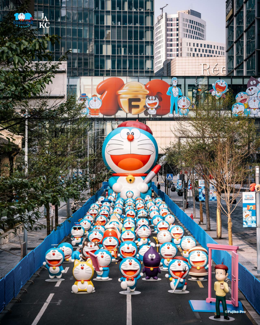 而在暑假之前,上半年在静安区安义路举办的哆啦A梦特展也成为城市大事件。这也是「100%哆啦A梦&FRIENDS巡回特展」香港站之后的中国大陆首展。随着12米高的巨型充气哆啦A梦和近百个1:1动漫、电影形象哆啦A梦雕塑整齐亮相,这条小马路在唤醒市民童年记忆的同时,充分实现了「体验式消费」的商业模式。