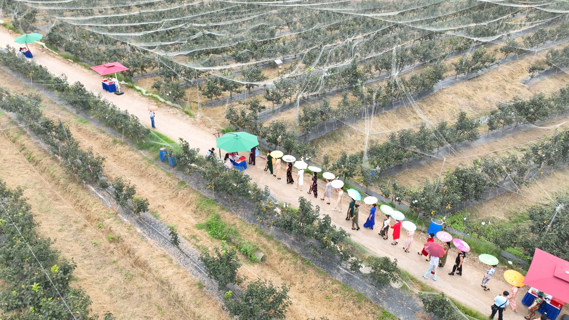 肥西官亭镇好柿年年采摘基地与六安相毗邻,本次活动还邀请合肥、六安两地 10 位自媒体头部主播、以及肥西月月农主播“小月月”参与 溯源带货,镜头里的甜柿与游客的笑脸相映成趣,助推太秋甜柿线上销售热度攀升。