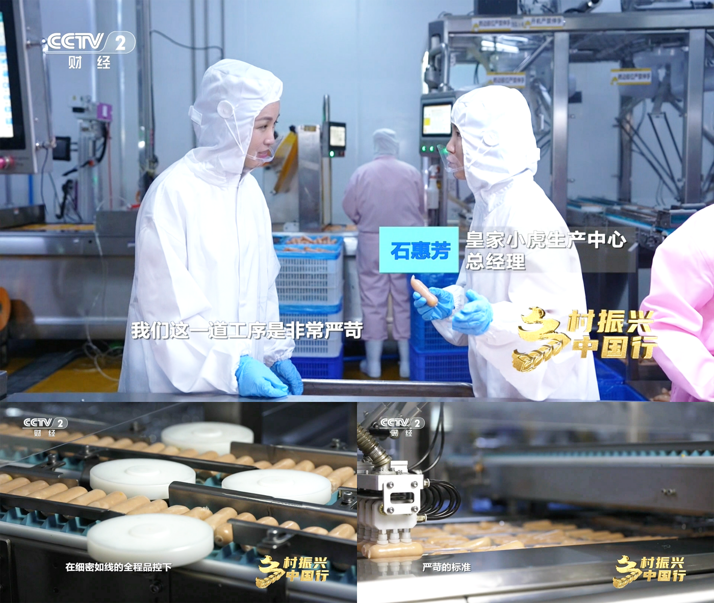 作为节目呈现的代表案例,皇家小虎的“王牌产品”皇家小虎烤肠,以及其生产的自有超级工厂之一——皇家小虎华北超级工厂,双双登上央视银幕,并将零食店中滋滋冒油的喷香美味到品质严苛的高标准产品背后的故事娓娓道来。从消费者的餐桌,到央视镜头下的高效能工厂、高品质烤肠,皇家小虎烤肠通过高标准、好产品链接起供应链上下游,携手中国最大的休闲食品饮料连锁零售商鸣鸣很忙,以实践共同助力乡村振兴。